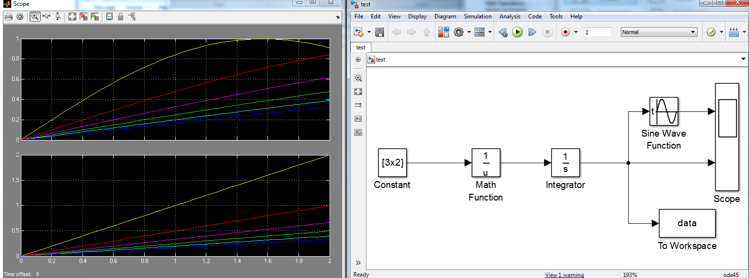 Eingang ist ein 3x2-Konstantmatrix, Ausgang ist scope(oder To Workspace), das funktioniert.