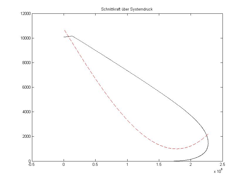 In einer Messung habe ich eine Schnittkraft in Abhängigkeit von Systemdruck und Weg ermittelt.