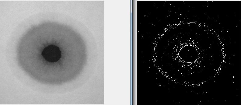 Ein Bild mit ungefähr 3 Kreisen (der innerste hat die höchste Intensität, nimmt nach außen hin ab) soll dahingehend betrachtet werden, welchen Radius die Kreise haben.