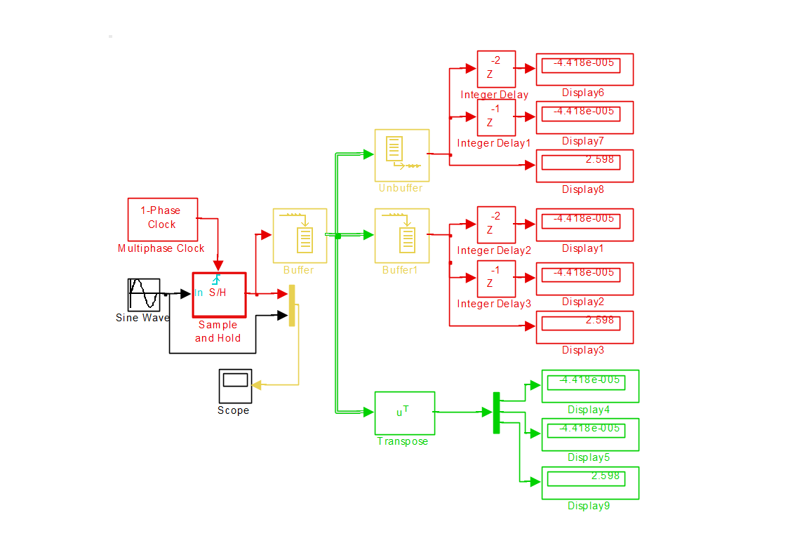 Wenn ich einen Buffer nehme habe ich das Problem, dass ich nie die drei Abtastwerte angezeigt bekomme sondern immer zwei gleich sind. Müssten am Bufferausgang normalerweise nicht alle drei Werte (als Vektor) dargestellt werden?