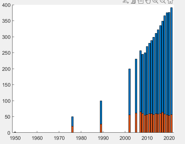 ist es möglich in MATLAB die x-Achse so zu skalieren, dass der Abstand in positive Richtung kleiner wird? In meinem Fall sind es Jahreszahlen. Ich möchte dass ab 2007 der Abstand immer ein Jahr beträgt und vor 2007 ein größerer Abstand zwischen den Jahren ist.