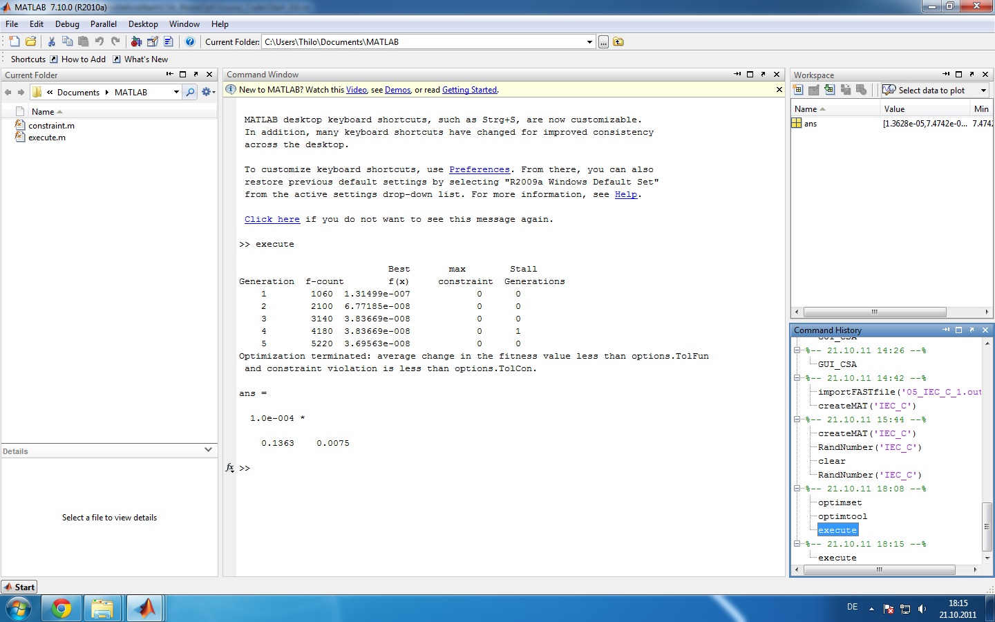 Im Anhang sind die Ergebnisse. Wie in den vorherigen Post beschrieben, sind die f-count's sehr hoch. Mir ist nicht klar, warum der GA die Fitnessfunktion so oft öffnet. In der testfunktion macht das zeitlich kaum einen Ausschlag, aber in meiner richtigen Fitnessfunktion sind das Stunden.