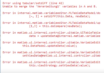 ich habe nun etwas entsprechendes zusammengebastelt. Der Fehler tritt immer auf, sobald man einen Wechsel innerhalb der Listbox tätigt zur einem Parameter, welche die gleiche Anzahl an Zeilen aufweist. Bei einem anderen Wechsel läuft alles reibungslos. In meiner GUI habe ich derzeit so gelöst, dass ich die Spalten vor dem aktualisieren der Daten lösche. Das ist allerdings keine schöne Lösung. Im Anhang befindet sich in der rar-Datei eine kleine GUI und die dazugehörige Tabelle als m-File.