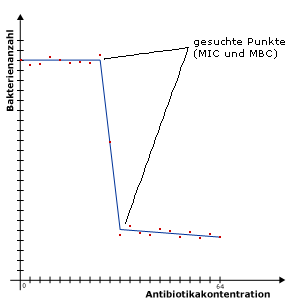 Ich habe 16 Datenreihen mit je zwanzig Werten die mir als Array vorliegen. Diese Daten stellen Messergebnisse von Bakterienkonzentrationen dar. Meine Aufgabe ist es nun zwei bestimmte Punkte über eine Approximation zu ermitteln. Dazu soll ich (laut meinem Professor) eine Polygonzug-Approximation mit drei Geradenstücken machen. Der Startpunkt und der Endpunkt sind dabei jeweils durch das erste bzw. letzte Datenpaar der jeweiligen Datenreihe festgelegt. Nur die zwei zu bestimmenden Punkte als Verbindungspunkte der Geradenstücke sind natürlich frei.