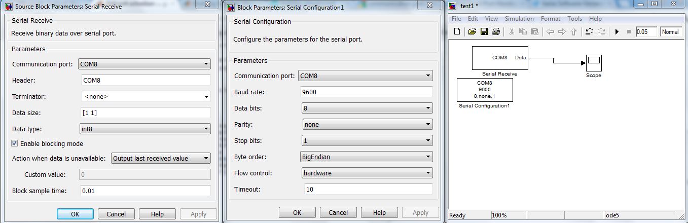 hmm... das habe ich noch nicht probiert... aber in der "Instrument Control Toolbox" sind Blöcke dafür drin. Falls du diese Toolbox nicht hast, wirst du um eine S-Function nicht rum kommen denke ich.