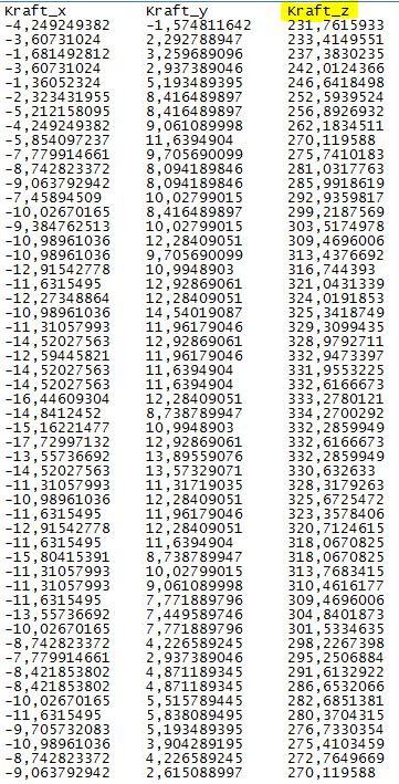 ich möchte aus einem Ordner mit Messwertdateien in .txt-Format immer die 1.Spalte(Time) und 28.Spalte(Kraft_z) in jedem Dokument auslesen lassen.
