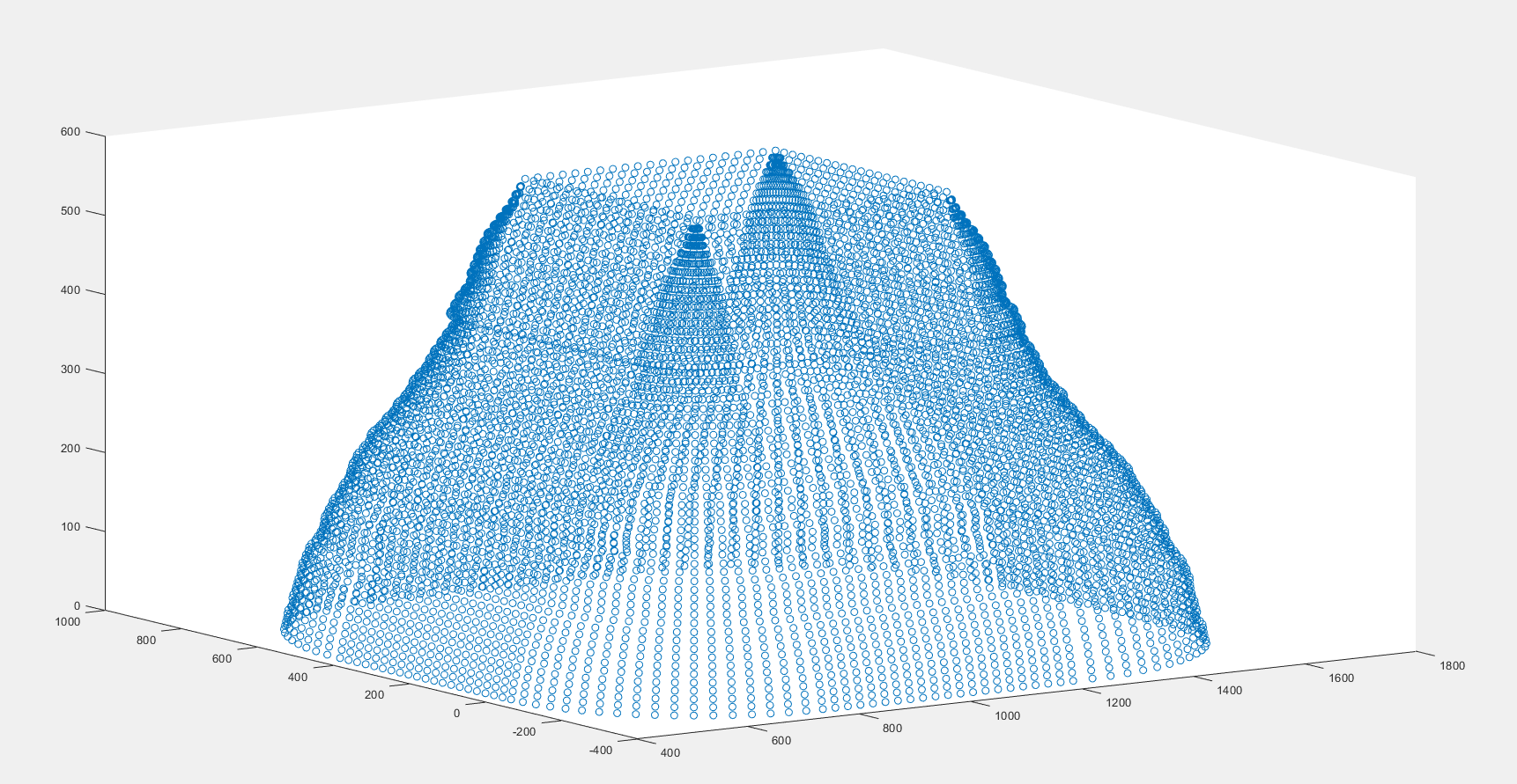 Ich habe das Problem, dass mein Kegel, der mit dem surf-Befehl erstellt wurde, an den unteren Kanten ausfranst (siehe Bild). Kennt da jemand eine Lösung, um das Ganze zu fixen, bzw. weiß jemand, wo das her kommt? Meine Punkte, über die ich die Oberfläche lege weisen keinen, für mich ersichtlichen, Fehler auf. Habe mir die Punkte auch im Einzelnen mit plot3 genau angeguckt...