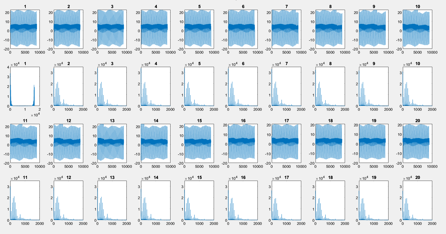 1. wie kann ich im Code die Verteilung des Signals in 20 Abschnitte und die FFt und das Plotten vereinfachen