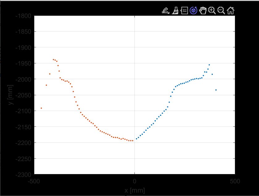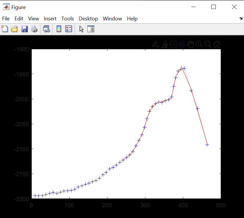 Ich habe wenig Erfahrung mit Matlab, deshalb habe ich die Funktion Polyfit an einem einfacheren Beispiel ausprobiert. Da funktioniert diese auch, jedoch eben über den gesamten x-Bereich. Wie kann ich diesen Bereich eingrenzen? Beispielsweise nur zwischen x=-500 und x=500.
