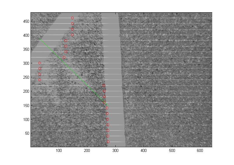 Das sind zwei Beispiel Bilder mit Ausreißern und der polyfit in grün