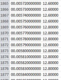 Also folgendes Problem: Hab nen paar CSV-Dateien die mit Werten ausm Oszilloskop bestückt sind. Sind einfach ganz normal nur x und y Koordinaten und ich will das via Excel nochmal als Bild darstellen. Problem bei der Sache ist, dass erstens einige Kommata drin stehen die ich nicht brauche und zweitens beide Werte immer in einer Spalte stehen. Hab in Anhang mal nen Foto gepackt damit man das ganze mal sieht. Will jetzt im Prinzip nur einmal die CSV-Datei auslesen das ganze ummodeln und als ne xls Datei wieder abspeichern.