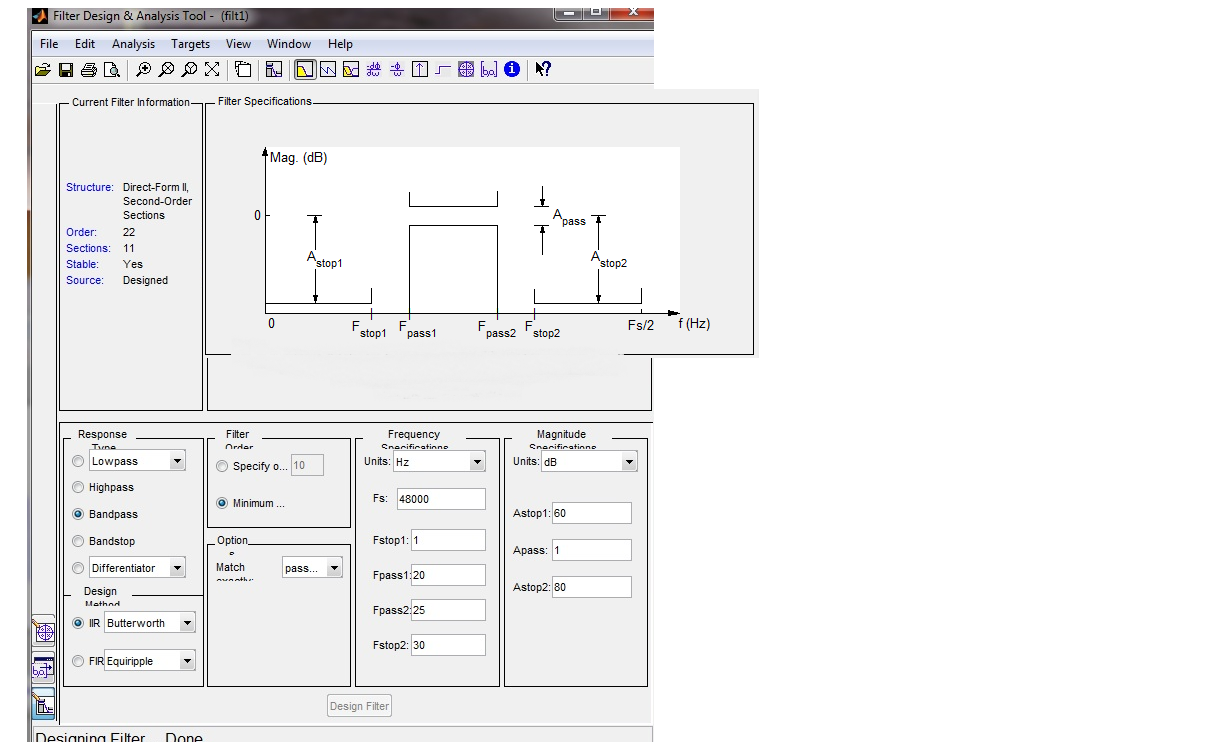 Titel: Bandpass im filter design & analysis tool deuten!?!