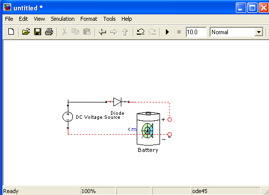 Ich bin ein Anfänger und möchte eine Spannungsquelle eine Diode und eine Batterie. Die Batterie ist in der Version Matlab 7.8 zu finden. Ich möchte die drei oben genannten Komponente verbinden, um zu gucken es eine Simulation meiner Batterie möglich wäre. Damit meine ich, ob ich meine Batterie über die Diode aufladen mit der Spannungsquelle aufladen kann.