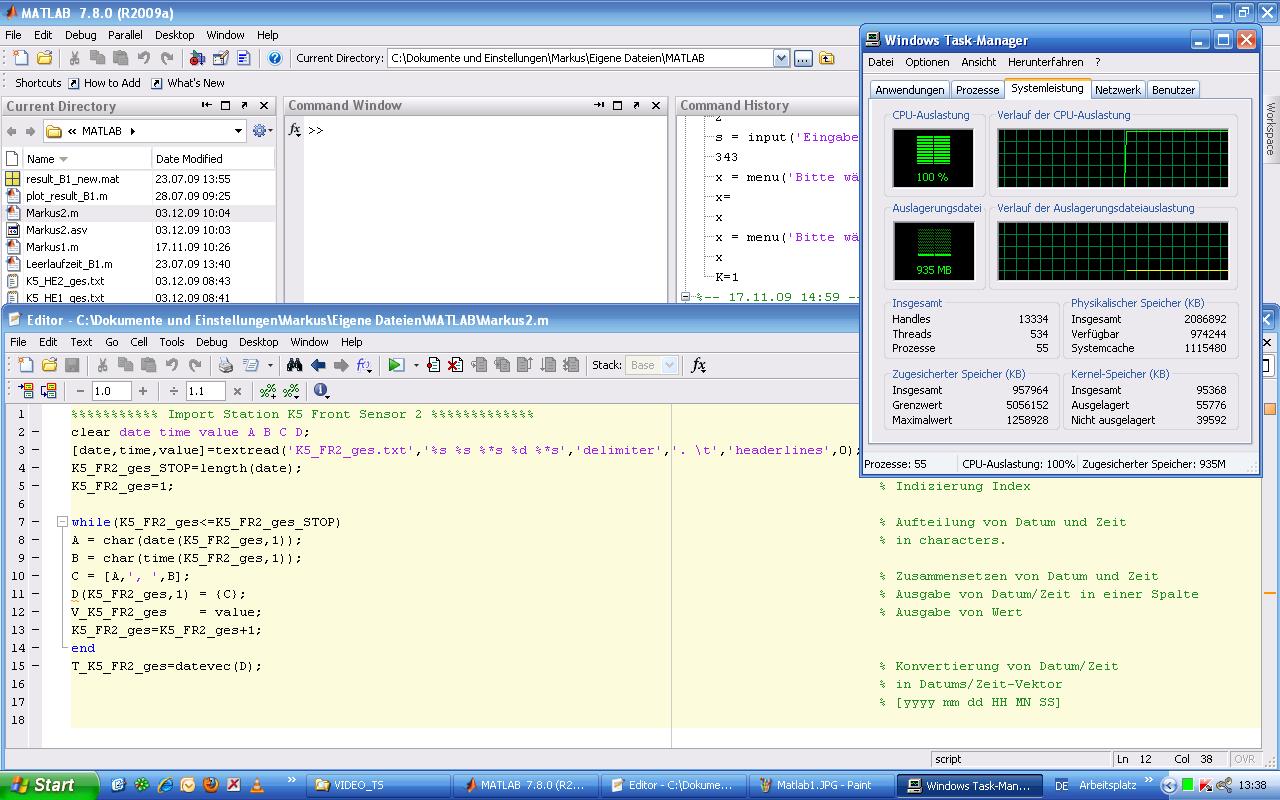 tut mir leid, meine Matlab Version hat dieses Verhalten nicht. Aber abbrechen kann man mit Strg + C, auch sollte unten im Matlab Command Window Busy stehen solange matlab arbeitet. Mich wundert etwas, dass es so lange dauert, checke mal beim einlesen deine RAM Werte es kann sein, dass dein Rechner viel in den swap memory schreiben muss.