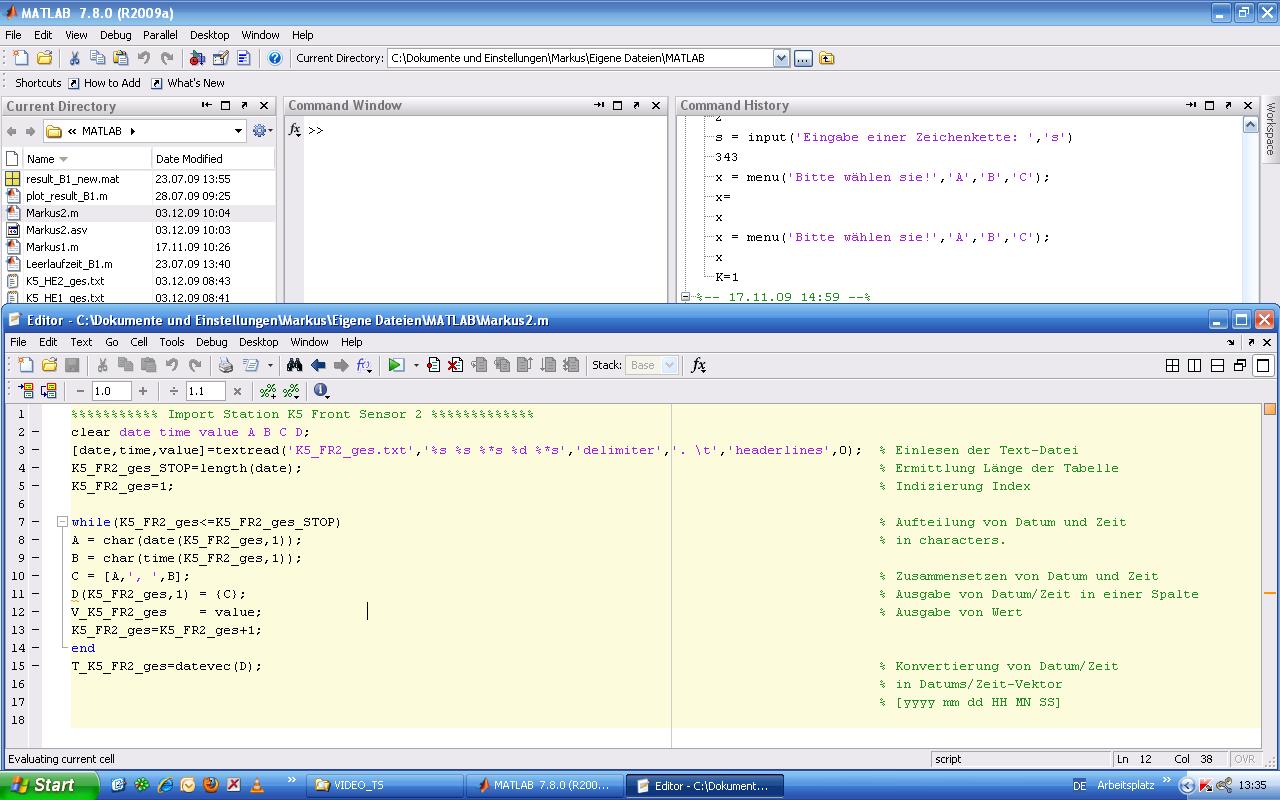 Matlab Odner ist in EigeneDateien, dort meine txt eingefügt und Namen geändert.