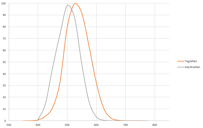 | Empfindlichkeit des Auges bei Tag und Nacht |