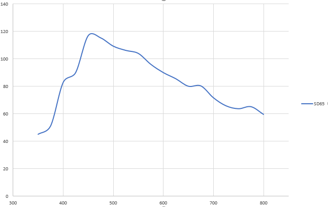 Die Kurven für SD65, sowie die Empfindlichkeit des Auges für Tag- und Nachtsehen, entnommen aus den entsprechenden Normen (Siehe Bilder)