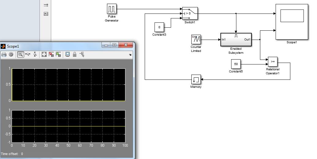 ich kein triggerd Subsystem nutzen, da nach meinen Testerkenntnissen das Subsystem beim nächsten Flankenwechsel wieder reaktiviert wird. Meine Berechnung soll jedoch nach weiterer Bearbeitung durch andere Blöcke oder nach Ablauf eines Timeouts bei wieder anliegen des Pulses neugestartet werden (also ähnliches Verhalten wie eine "Totmannschaltung").