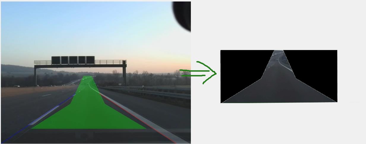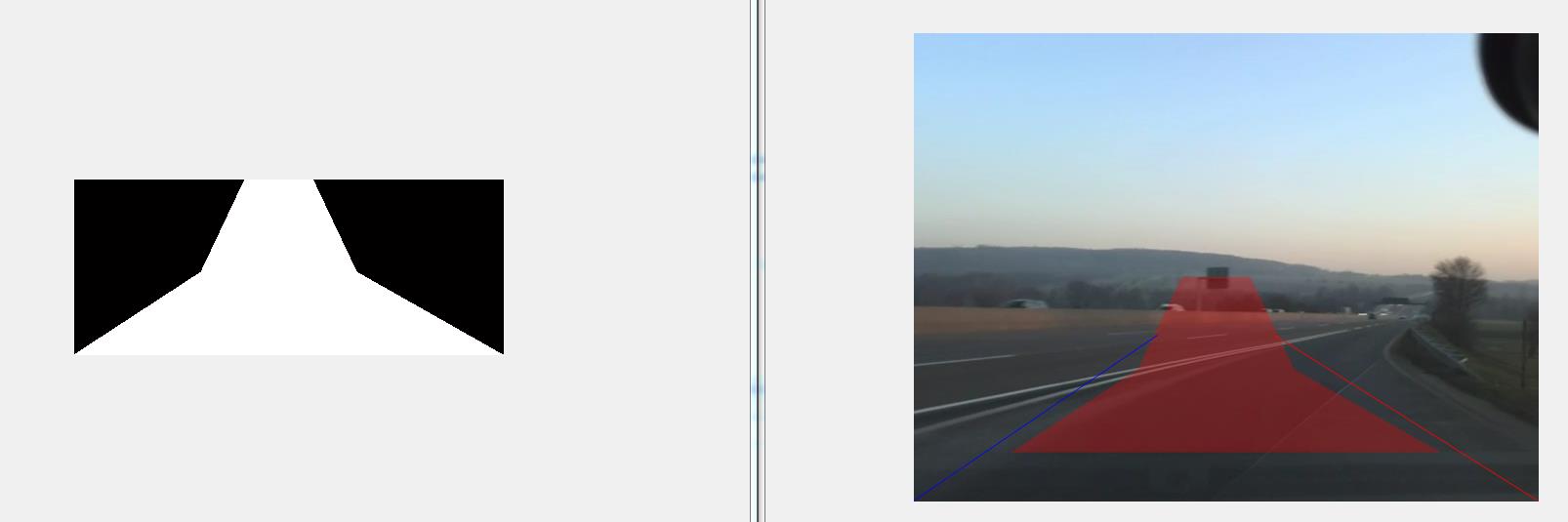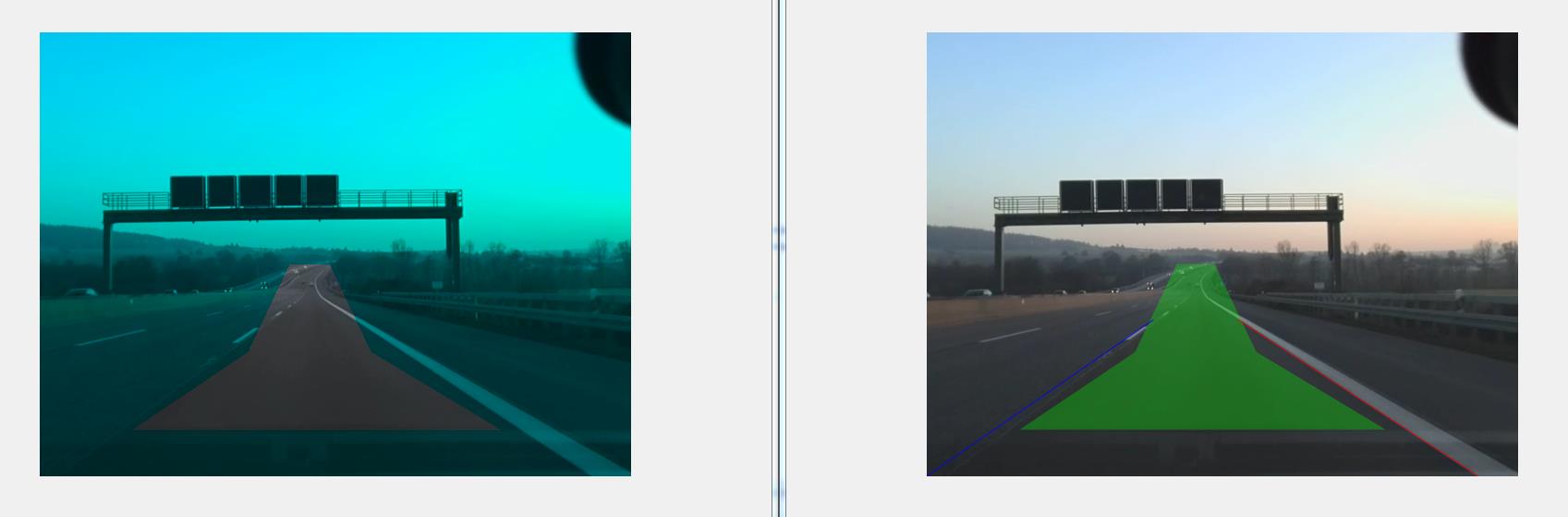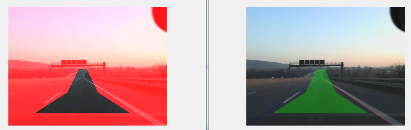 Ein entsprechendes Frame mit den Parametern [480 640 3]. Dieses würde ich gerne nach der Spurerkennung (Polygonform) in ein Rechteck zuschneiden, in welchem der gesamte erkennte Spurbereich (Polygon) drinnen ist. Den Bereich außerhalb des Polygons würde ich gerne schwarz färben, damit die Objekterkennung danach nicht so viel zu arbeiten hat. Wie bekomme ich dies hin? Zur Verdeutlichung habe ich ein Bsp angehängt.