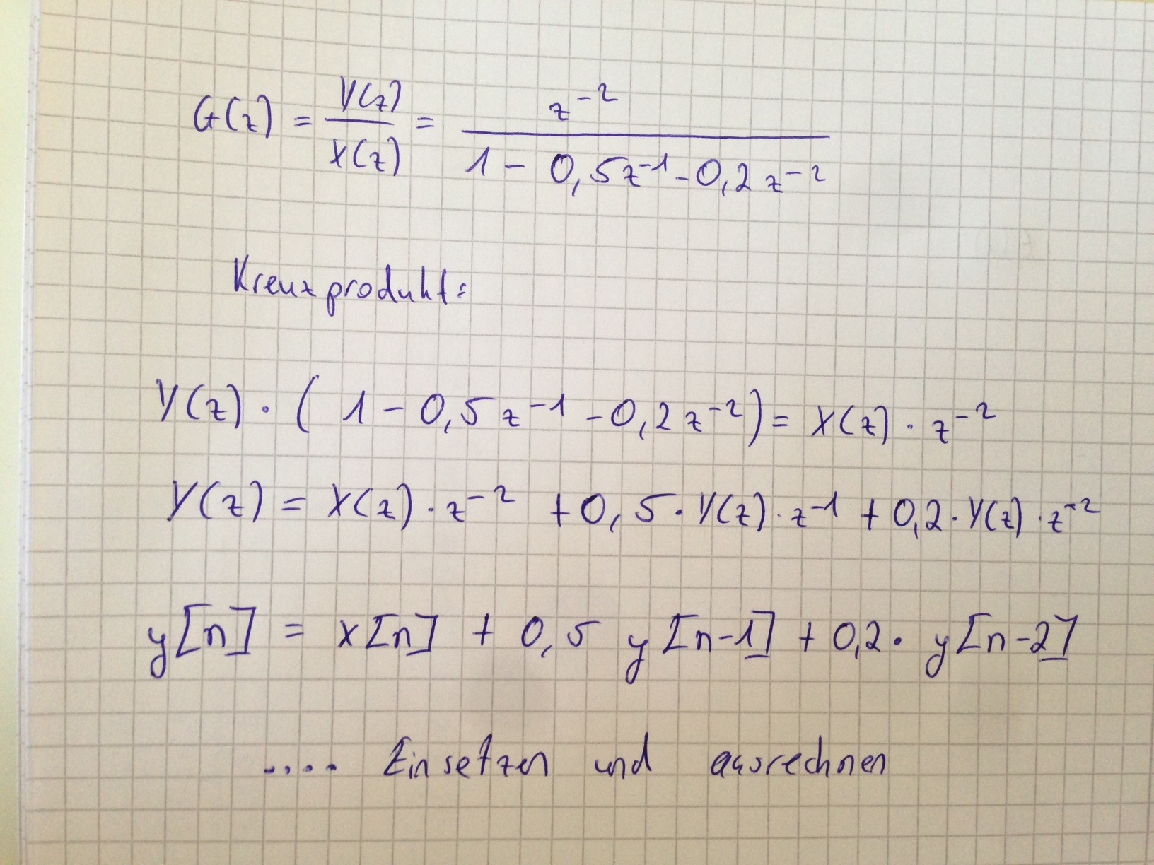 Ziel ist es von der Übertragungsfunktion die Ausgangsgröße y[n] zu bestimmen (Sprungantwort). (s. Anhang)
