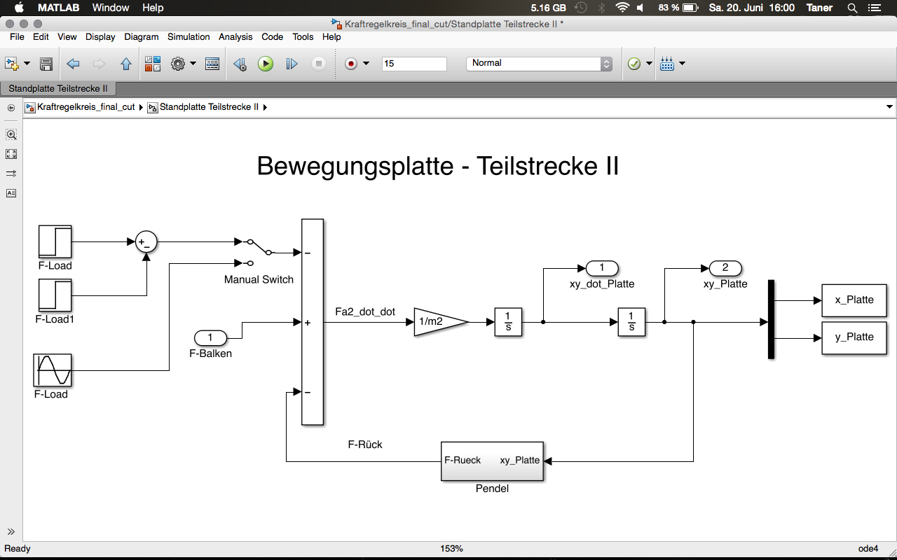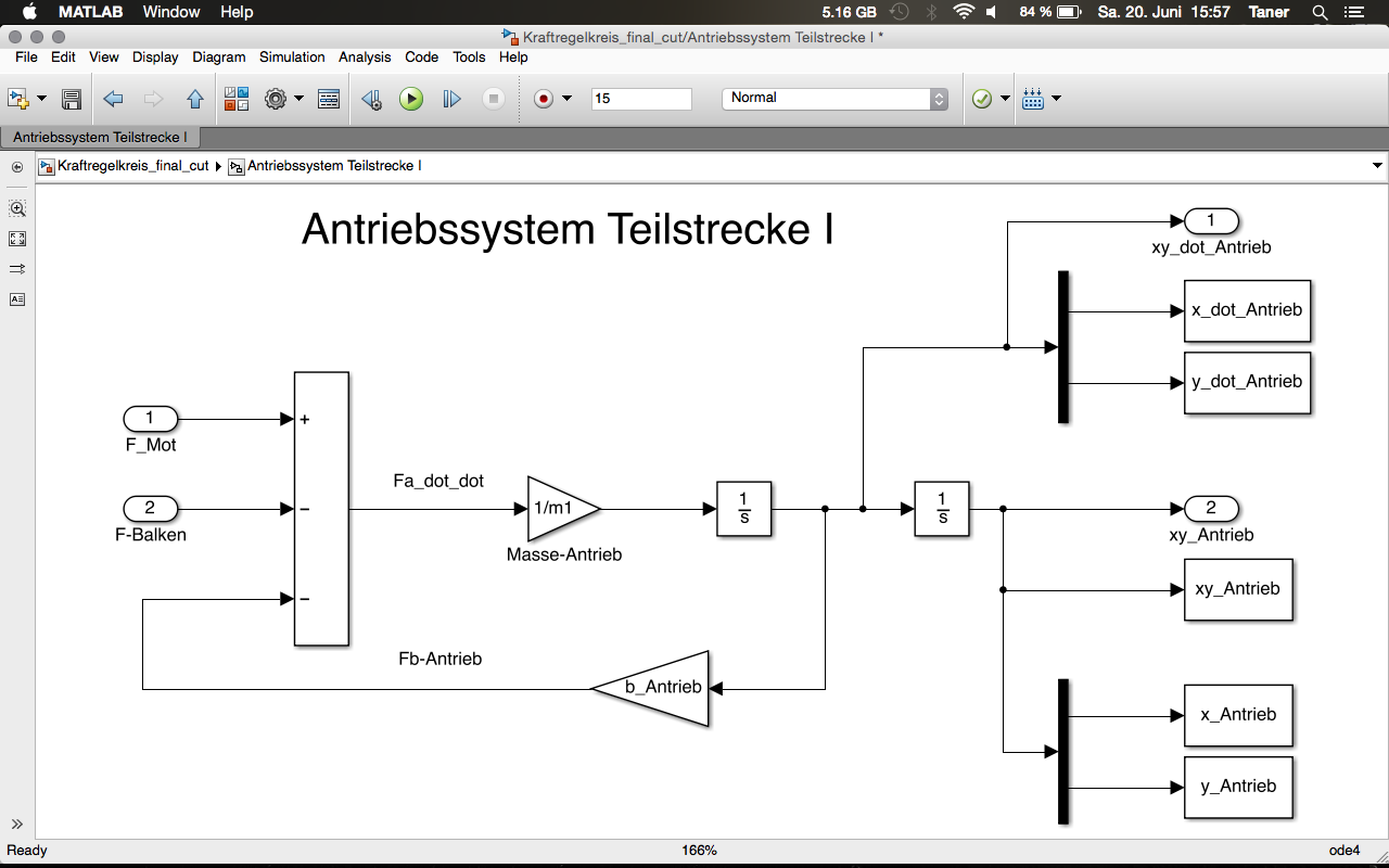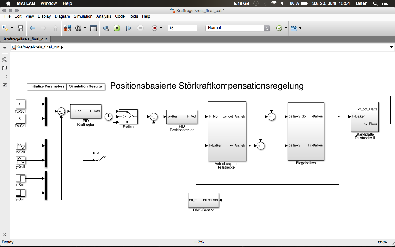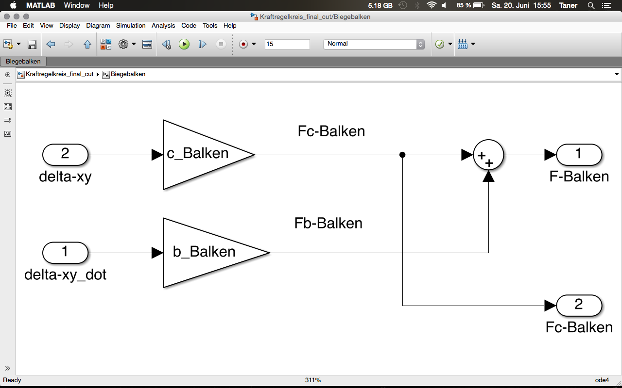 Ich habe anhand meines physikalischen Ersatzmodells und den Kräftegleichgewichten ein Simulinkmodell erstellt. Nun möchte ich dessen Regler gerne nach symmetrischem Optimum auslegen bzw. die Verstärkungen und Zeitkonstanten ermitteln.