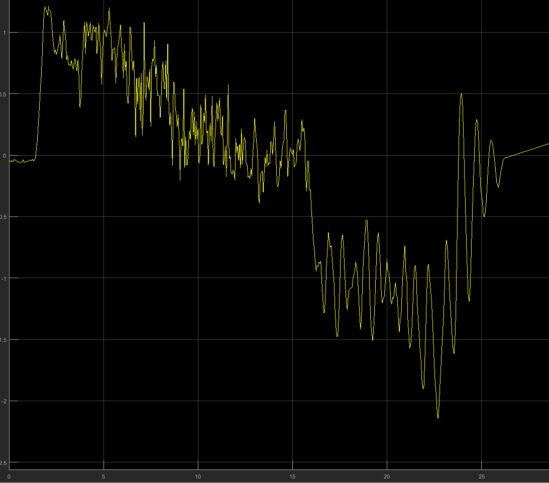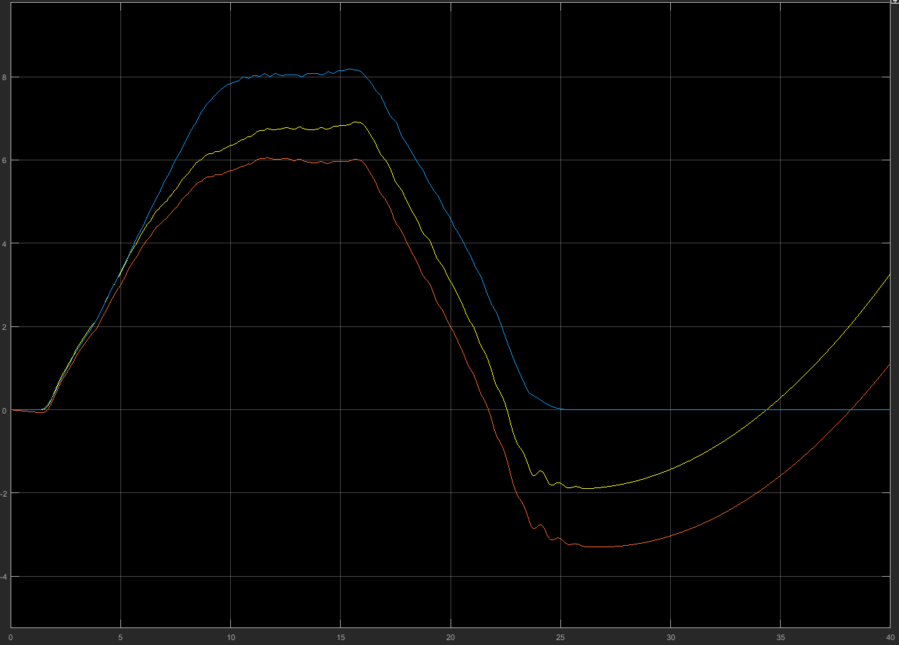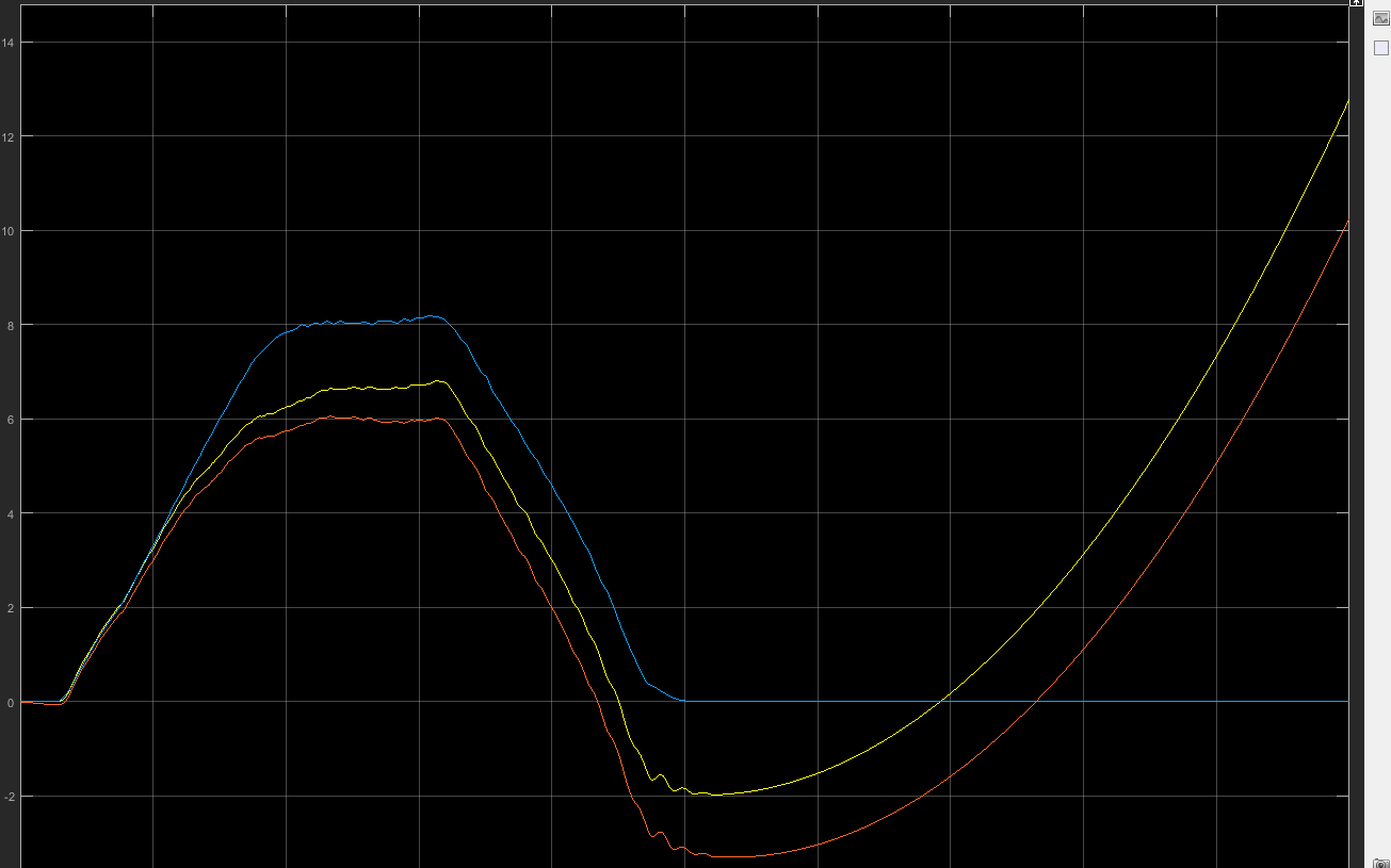 Ab da, wo Dein Fahrzeug eigentlich steht, scheint die Beschleunigung noch linear zuzunehmen. Rotiert Dein Koordinatensystem da irgendwie weiter, obwohl es eigentlich still stehen sollte?