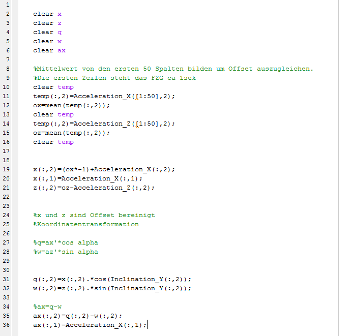 Jetzt habe ich eine Koordinatentransformation gemacht, ich hab aber von Z nur die absoluten Werte nicht die relativen, also inkl. Erdbeschleunigung.