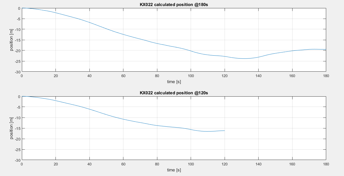 Mit dem unten beigefügten Skript lasse ich mir jeweils die Geschwindigkeit und Position für den gesamten Zeitraum (180 sekunden) und einen Teilbereich des Zeitraums (120 sekunden) berechnen.