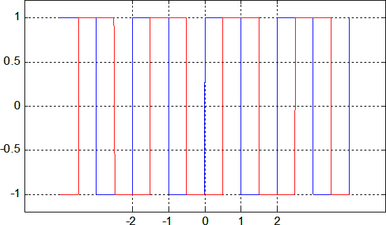 ich will bei meinem erzeugten Rechteckfunktion, die Periode an die x-Achse schreiben. Also bisher hab ich 0 0 0 g g, möchte aber natürlich -g g/2 0 g/2 g.