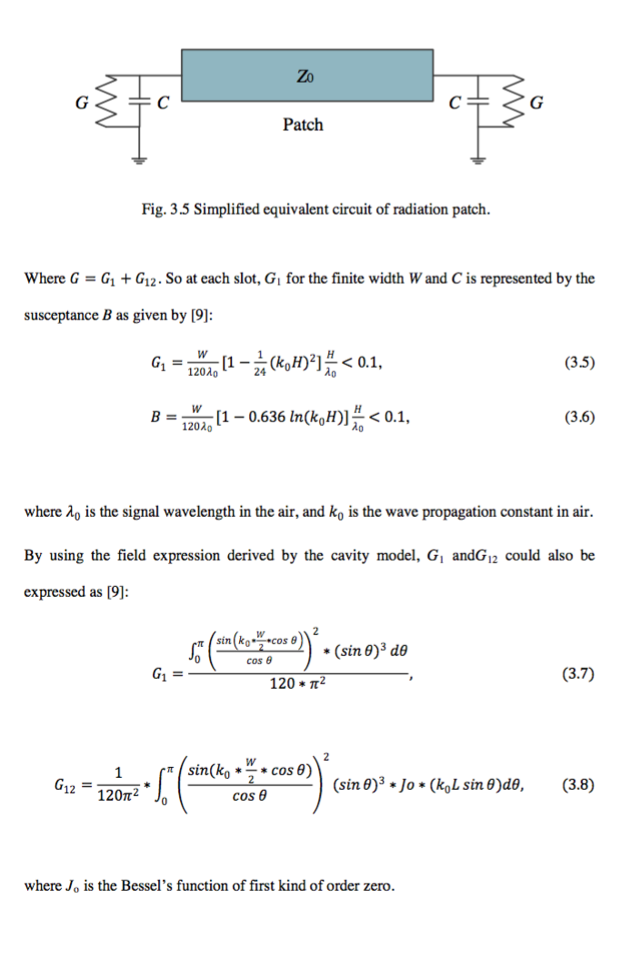 A microstrip antenna with overall dimensions of L = 0.906 cm (0.357 inches) and W = 1.186 cm (0.467 inches), substrate with height h = 0.1588 cm (0.0625 inches) and dielectric constant of εr = 2.2, is operating at 10 GHz.