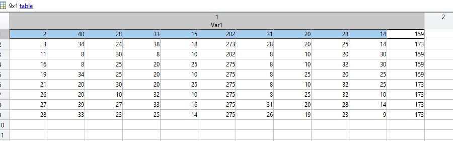 Nun habe ich einen Vektor. Dieser Vektor beinhaltet die Zeilen, die ich aus der Matrix lesen möchte.