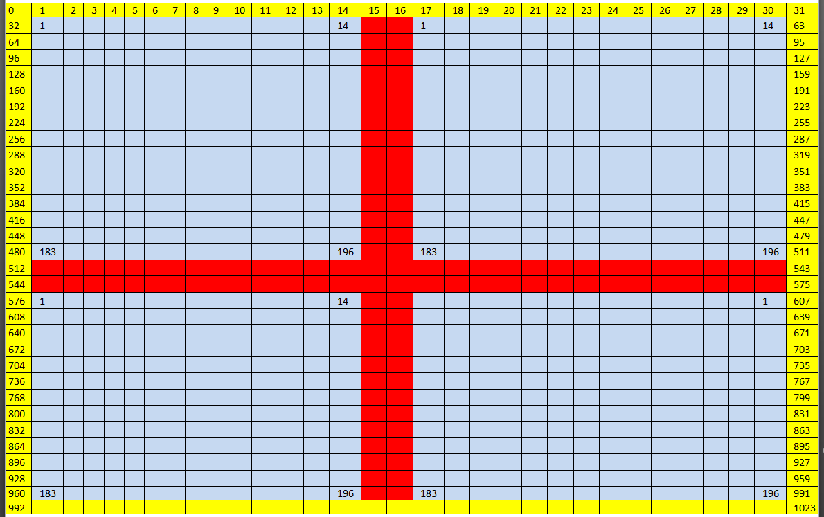 Nun möchte ich ein Muster aus der Matrix auslesen (siehe Bild im Anhang, rotmarkiertes Kreuz in der Mitte und Blaue Rechtecke)