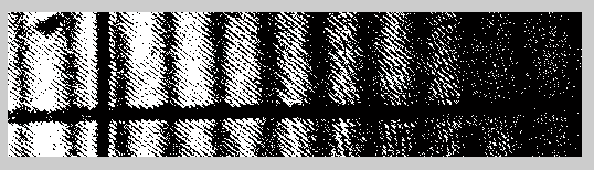 das Bild zeigt Interferenzstreifen, also Überlagerungen von Lichtwellen. Die Aufgabe besteht darin, diese (sich bewegenden) Streifen zur Referenzmarke (ganz schwarzer vertikaler Strich im Bild) hin auszuwerten, also ihre Verschiebung zu bestimmen.