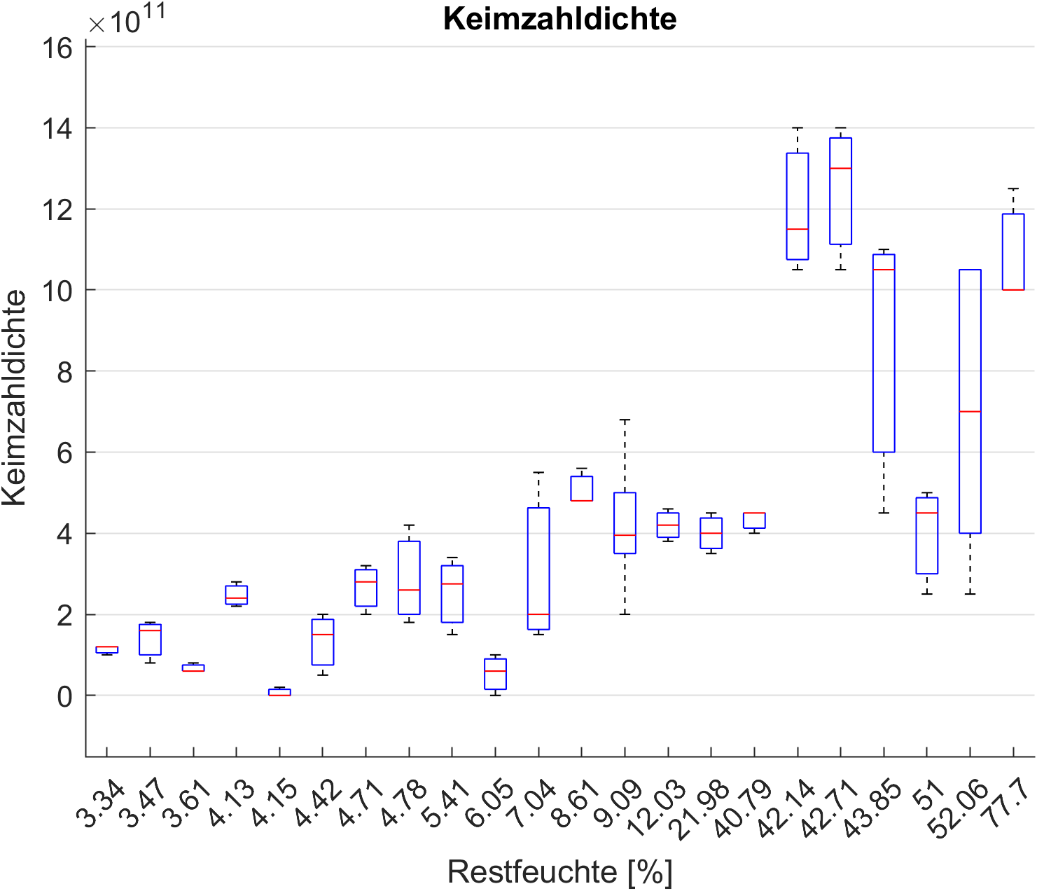 Habe im Anhang die Datei, dabei möchte ich einen Boxplot der verschiedenen Restfeuchten mit den jeweiligen Keimzahldichten. Die x-achse soll linear sein und die Daten sollten sich nicht überschneiden.