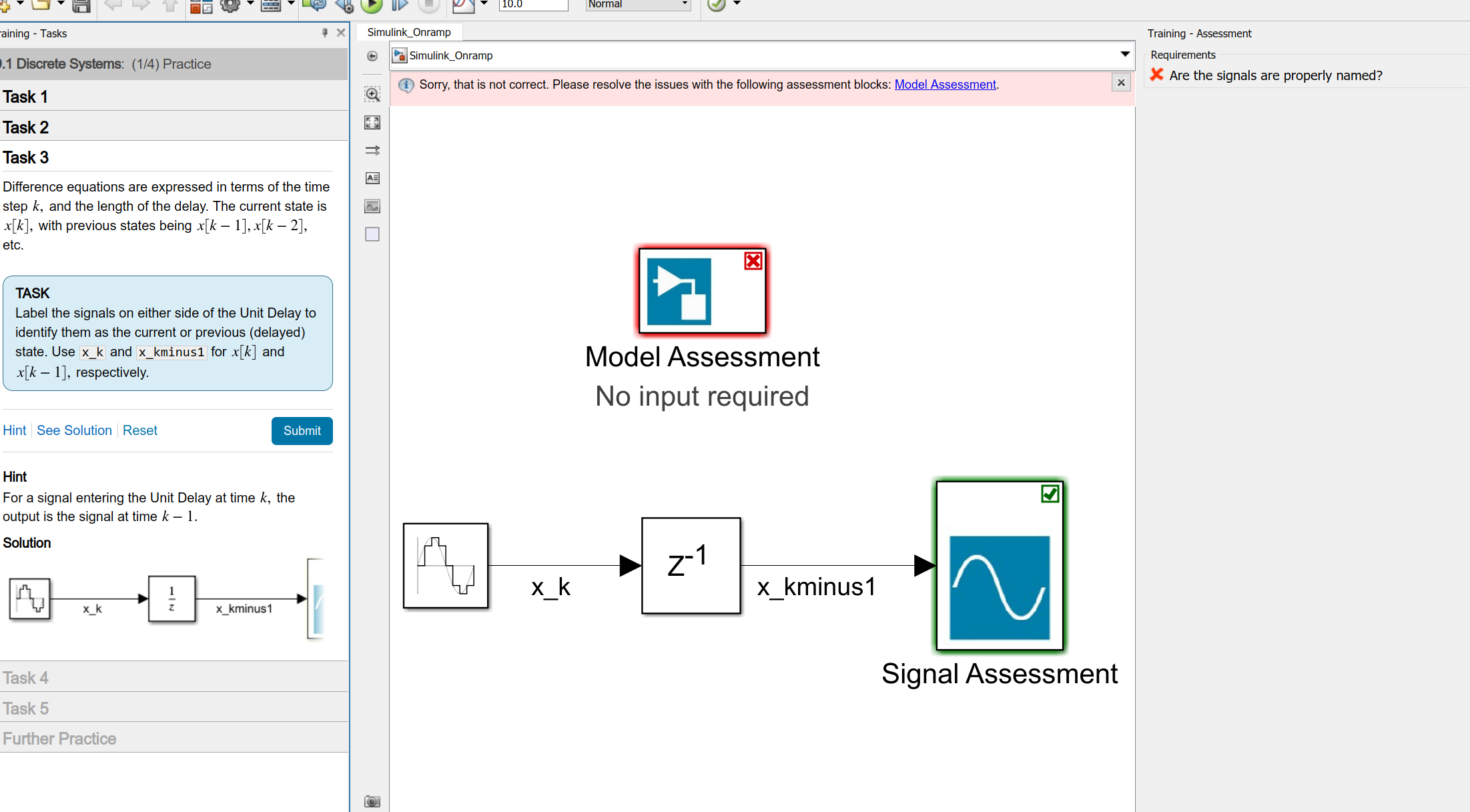 Titel: Bug/Fehler in Simulink Onramp 9.1 Discrete Systems: Task 3