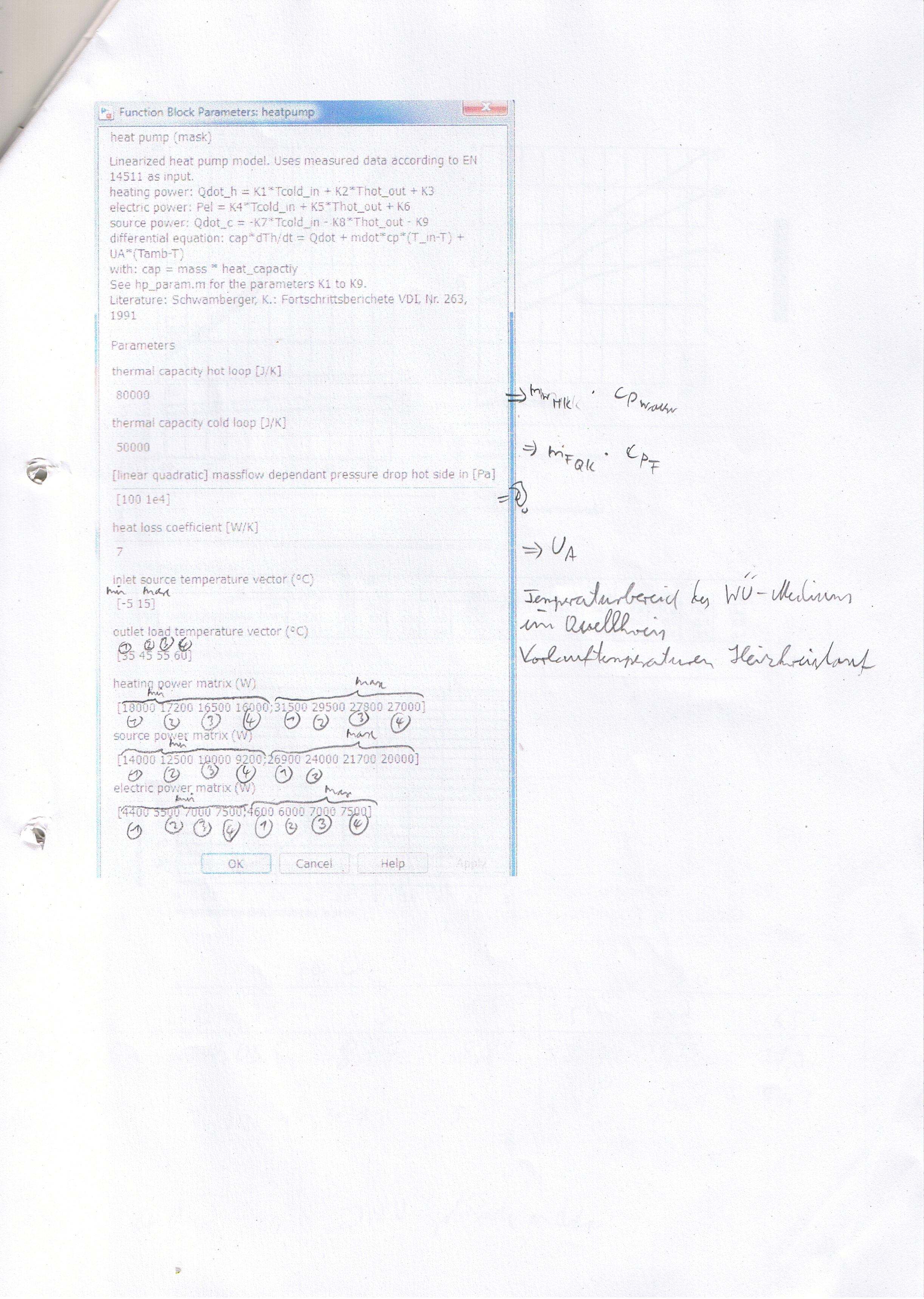 ich verstehe leider nicht so richtig, was ich bei den Parametern des Wärmepumpen-Blocks als Matrizen angeben soll.