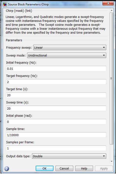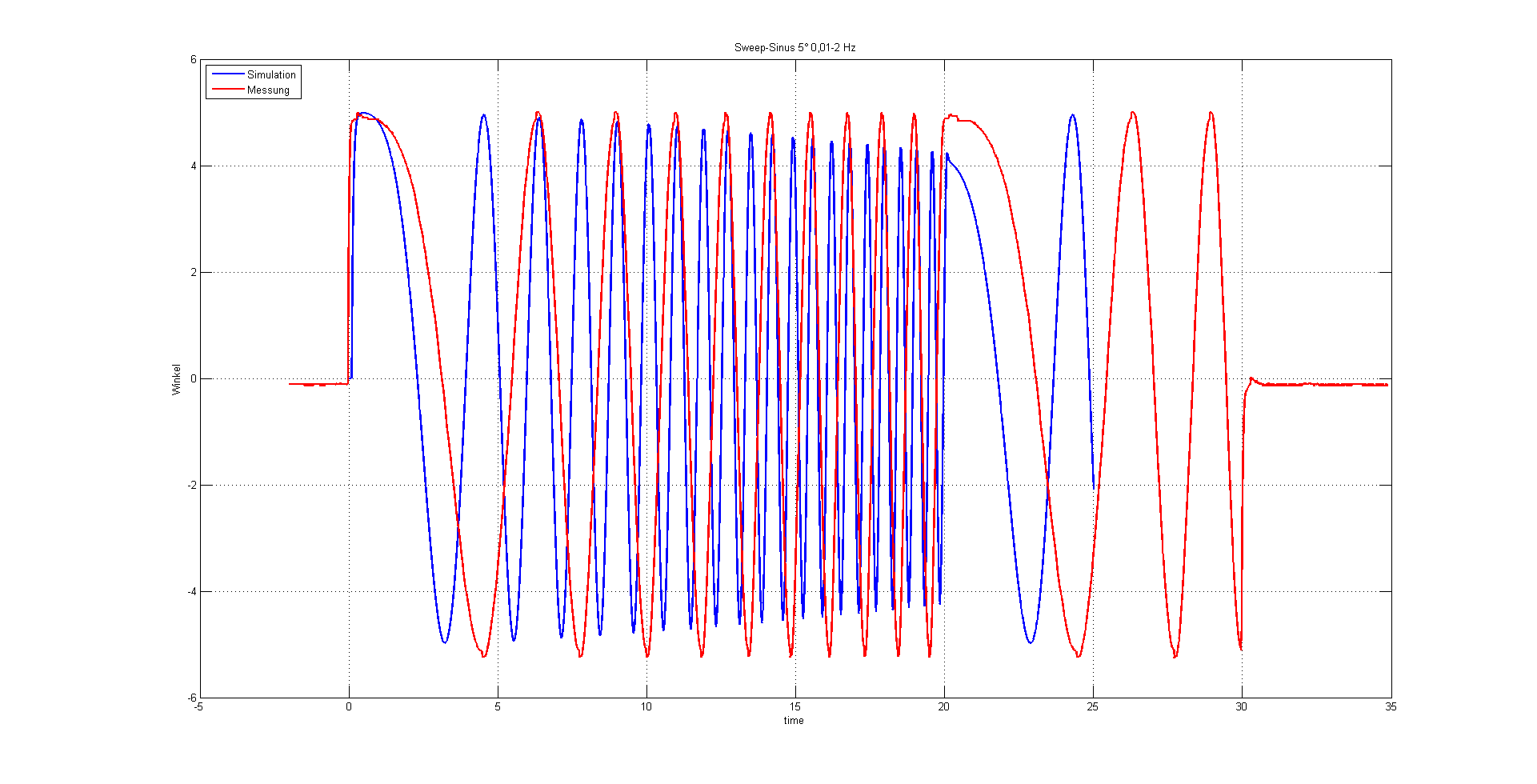 ich muss ein Sweep-Sinus-Signal nachmodellieren, 5° Amplitude, 0,01 - 2 Hz.