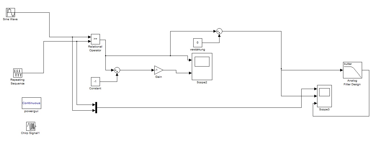 Diese sollen mittels eines Comparators modeliert werden zu einem PWM Signal. Den Comparator habe ich mittels eines >= Relational Operator realisiert.