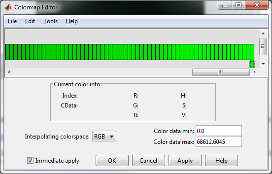 Ich habe die im Colormap Editor erstellte Colormap als Datei gespeichert, und lese diese dann im Programm mit load ein. Damit kann ich dann die Colormap definieren.