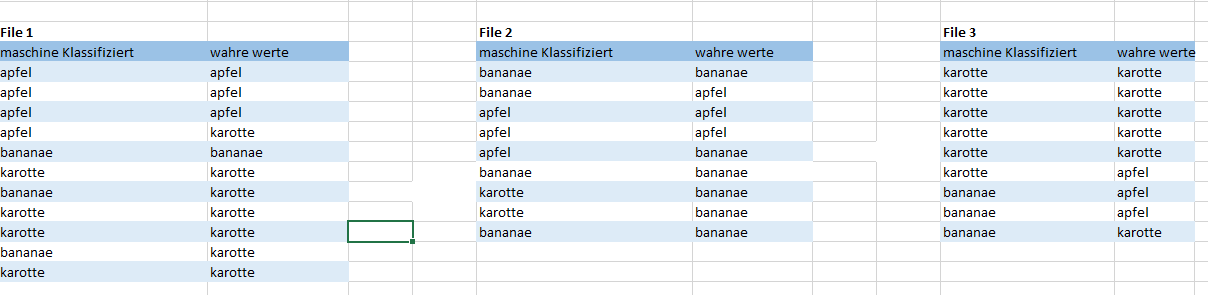 im Anhang noch mal ein bsp wie die files ausschauen nur das da nicht 10 werte drin stehen pro file sondern 1000. und Banane, apfel usw sind die Klassen