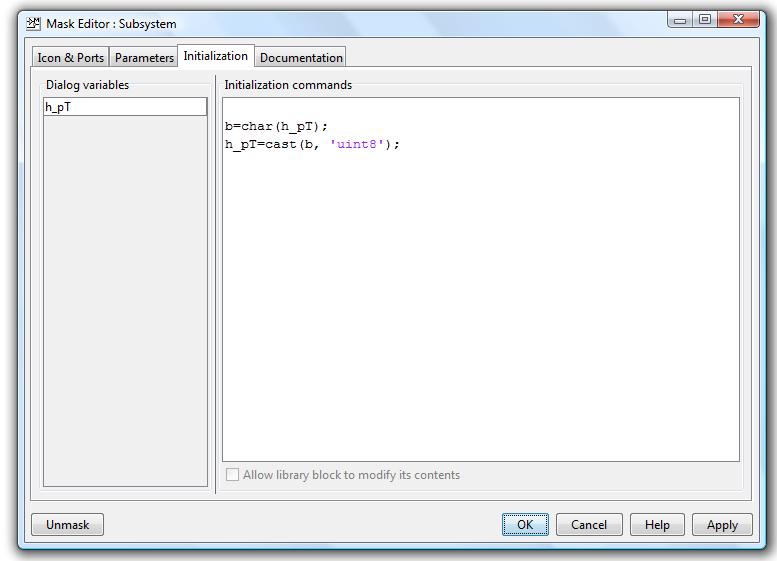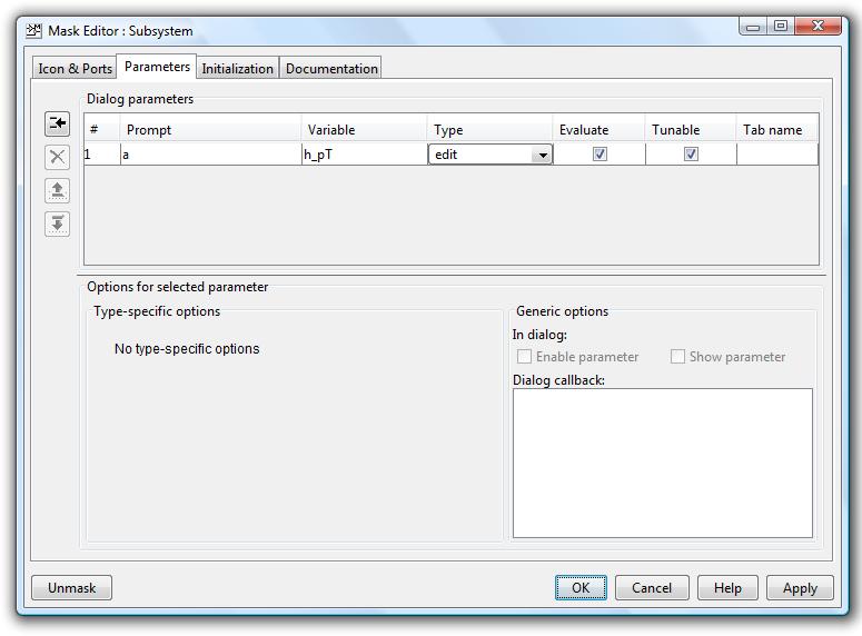 Ich habe meine Constant-Block in ein Subsystem eingefügt und den Masken-Editor aufgerufen. Meinen Constant-Block habe ich mit h_pT benannt (Doppelklick auf den Block).