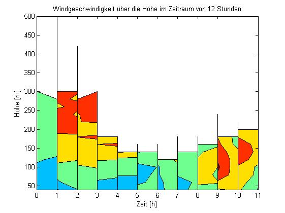 Der Übergang von Stunde 4 zu 5 sieht in deinem Plot ja ganz glaubwürdig aus, aber der Übergang von Stunde 1 zu 2 oder von 9 zu 10 kann ich so nicht glauben. Es gibt ja keinen Grund, warum der Wind eine Stunde lang nur so lau weht und dann innerhalb von 8 Sekunden sein Verhalten komplett für eine Stunde lang ändert und dann wieder ein neues Verhalten zeigt. (Falls die Geschwindigkeit von blau->grün->gelb->orange->rot farbkodiert ist).