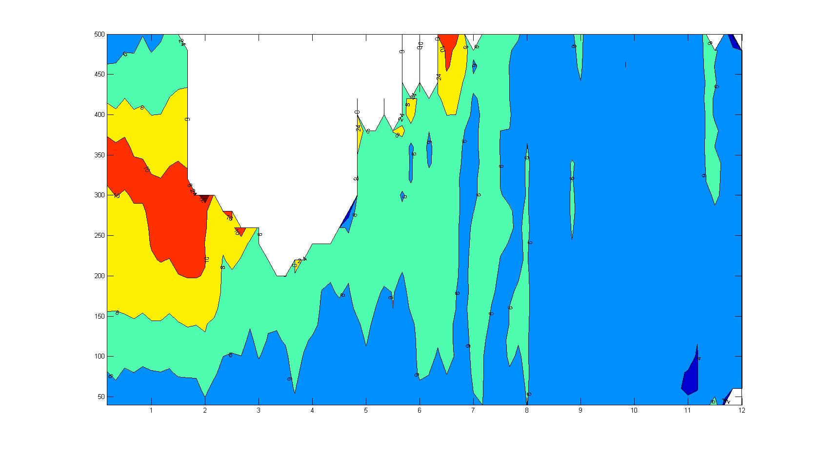 Ich kann dir da dann leider auch nich weiterhelfen. Diese scharfen Übergänge von einer Stunde zur anderen in den Windgeschwindigkeiten sind dann einfach so in den Daten und da wird dir dann der Contourplot immer so scharfe vertikale Trennlinien geben.