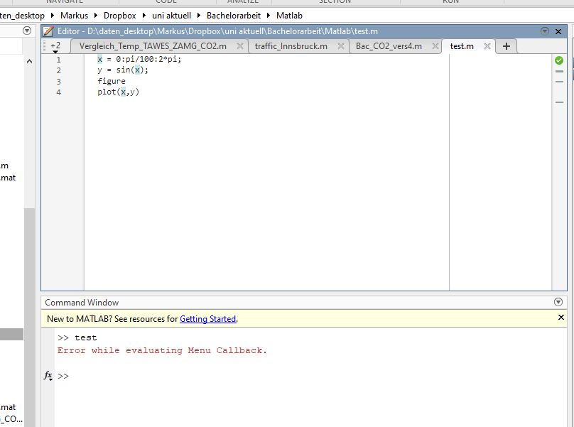 Achte darauf, dass im momentanen Verzeichnis keine Dateien sind, die MATLAB-interne Funktionen überlagern könnten.