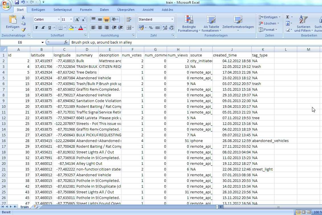 Ich hatte vor den Datensatz aufzuteilen, da er ja ziemlich groß ist. Meine Idee war diese aufteilung anhand der Längen- und Breitengrade zu machen, bzw. erstmal mit einem davon und wenn es klappt gucken ob man es erweitern kann.