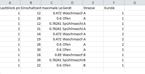 Lastblock ;Einschaltzeitpunkt;maximale Leistung;Gerät;Strasse;Kunde