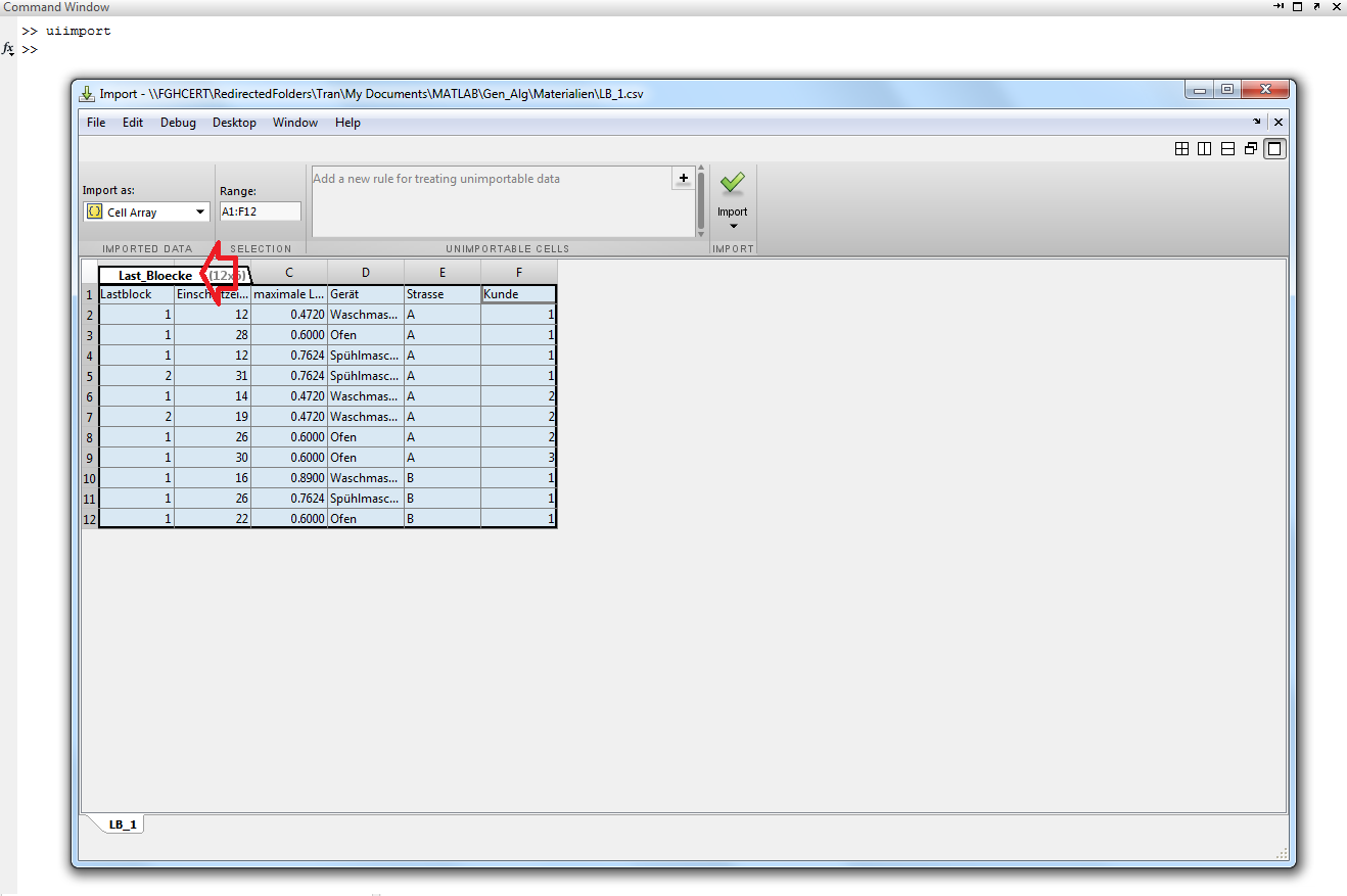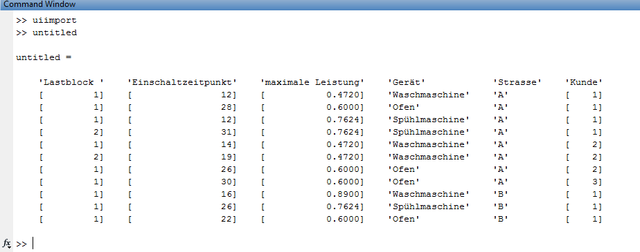 Bisher habe ich dazu den Import Wizard aufgerufen und die CSV in ein Cell-Array importieren lassen. Leider lässt sich diese nicht direkt in einer Variable speichern.(nach dem Motto x = uiimport('file'))