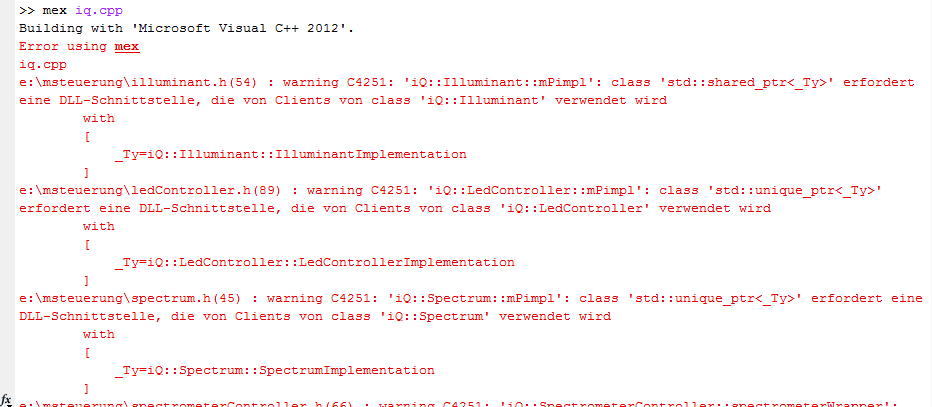 C++ in Matlab (MexFile) und dll Probleme Fehler C4251 |