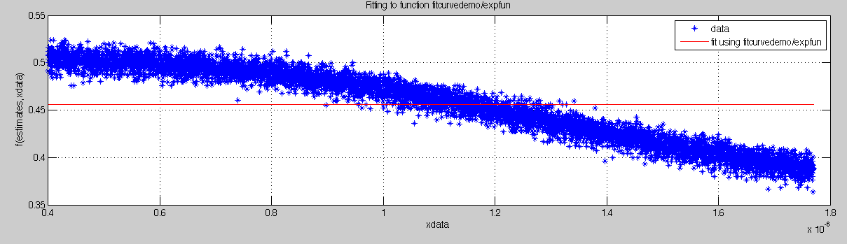 Ich versuche die unten dargestellte Krve aus Messwerten mittels fminsearch zu fitten aber leider komme ich nicht weiter hat ggf. jemand eine Idee?