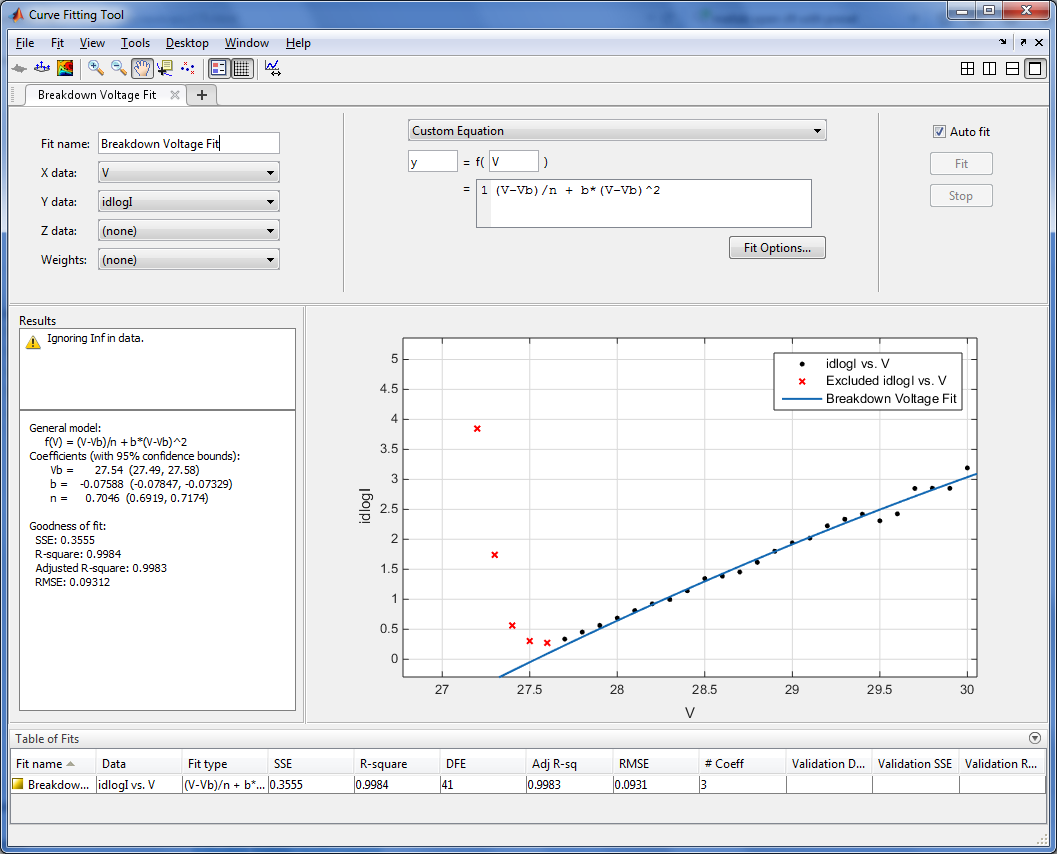 Nur hilft mir das nicht wirklich weiter. Dass ich die ausgeschlossenen Punkte und die Achsenabschnitte im Code ändern kann, ist mir bewusst und das habe ich im längeren Code-Part, den ich gepostet habe, ja auch genutzt. Wenn ich den Code allerdings ausführe, führt er halt direkt den Fit durch und spuckt mir die Werte aus, geht aber nicht mehr den "Umweg" über die Curve Fitting Toolbox, was ich aber möchte.